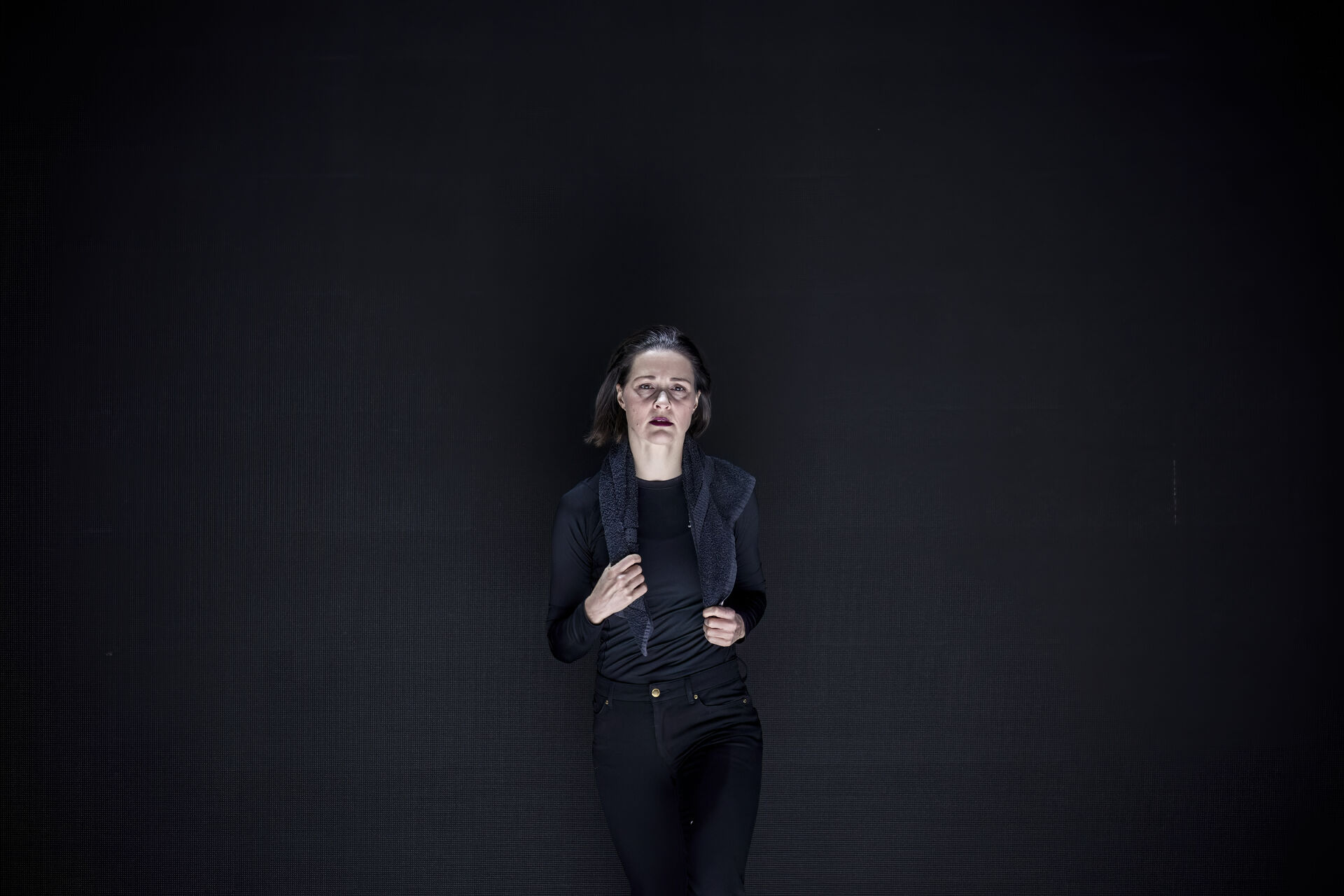 The concept was reworked. It wasn't about testing my limits and boundaries, but rather my abilities. The negative became positive, the possibility of reaching my limits became reaching the peak of my skills. However, there was one challenging moment. I didn't want to undress on stage anymore. But Yuliia Lopata had a convincing and compelling reason for wanting me to. She was also trying to convey to me her extreme physical experience of living in a war-torn country. She told me about how her close friends and family were dying on the front lines, how young choreographers and dancers had fallen, what it was like to live under the constant threat of drone strikes, what it was like to step over the broken glass of a café that had just been hit and order an espresso, and what it meant to decide to go to the front herself. It was crazy, impossible to empathize with her reality. I reached deep inside myself.