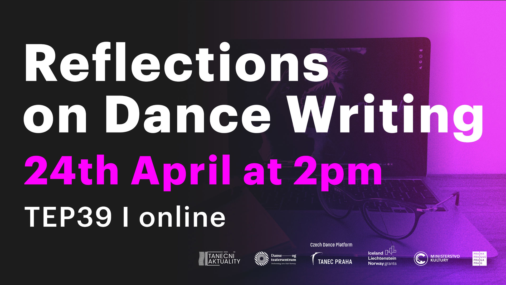 The discussion will take place on Sunday 24 April at 2pm Prague time, and it will last approx. one and a half hours. The host Lucie Hayashi invites five dance critics and leaders of writing seminars: Sanjoy Roy, Emily May, Anette Therese Pettersen, Hild Borchgrevink and Petra Dotlačilová. The debate will be streamed as a webinar and we expect to get feedback also from several emerging dance writers - former seminar attendees - who will be in the audience.