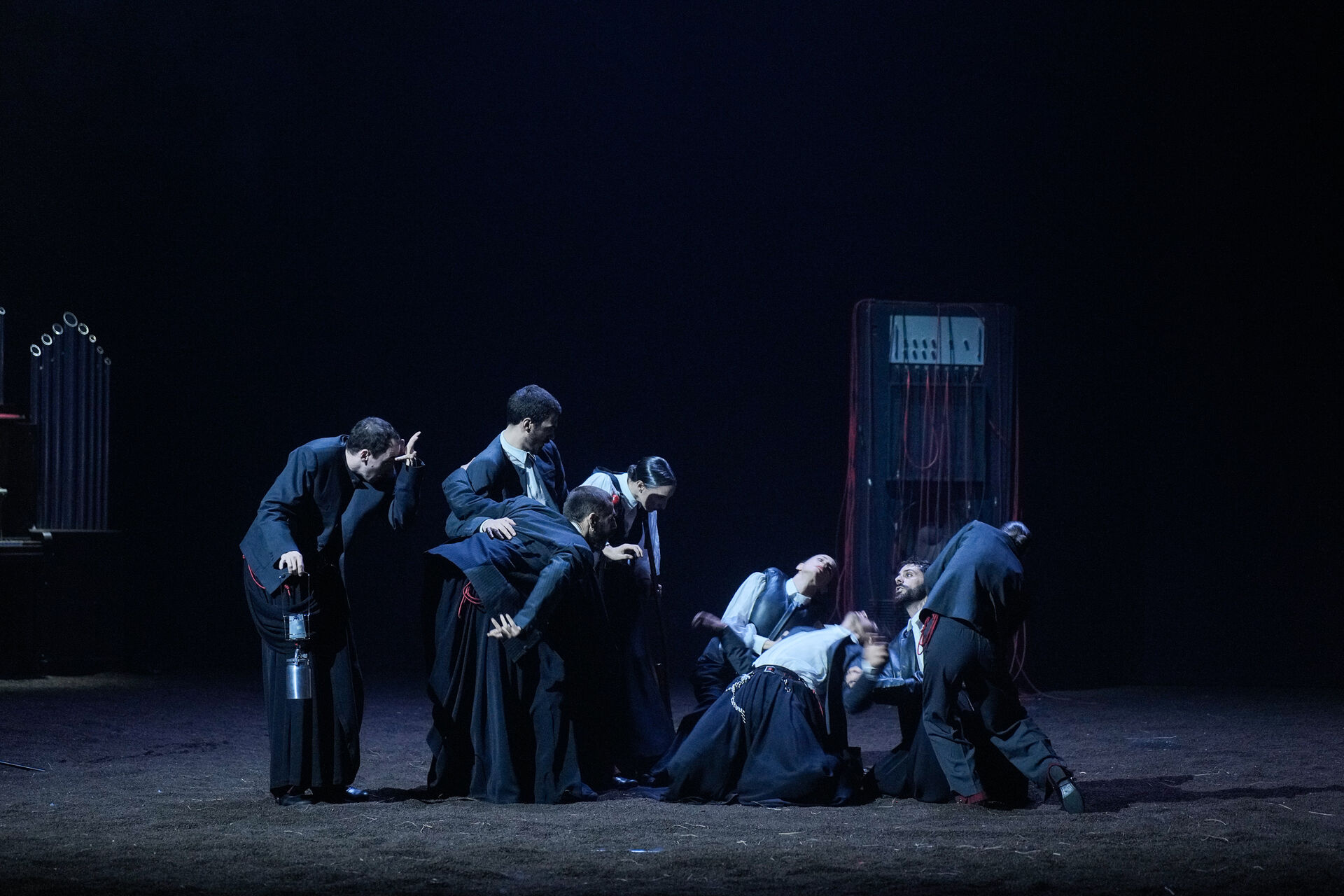 The first part of the performance relies on repetitive, accumulative sequences, an attempt to evoke Sisyphus’ myth—the ascent, the fall, the restart. Gestures layer and multiply but never reach a decisive breaking point, leaving a sense of narrative emptiness. The second part, more narrative-driven, recalls the aesthetics of Sharon Eyal, Marcos Morau, and Girolami himself (from the IVONA group), yet fails to transform these influences into a truly personal language.