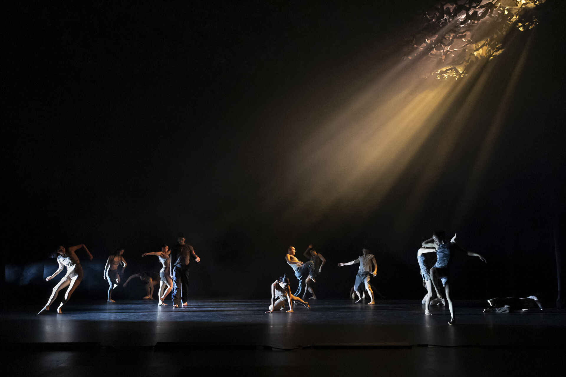 With Jungle 정글, Kim Sungyong guides fifteen dancers from the Korea National Contemporary Dance Company on a sensory journey through a reinvented nature. The jungle symbolism—deployed as a metaphor for life’s complexity—permeates the work. Kim treats it as a figure of inner nature, composed of layers, darkness, and invisible interconnections. The stage, shrouded in mist, is a space balanced between artifice and organicity: a cage-like ceiling, suspended leaves, and green and orange lights create a hypnotic ecosystem where shadows and bodies chase one another.