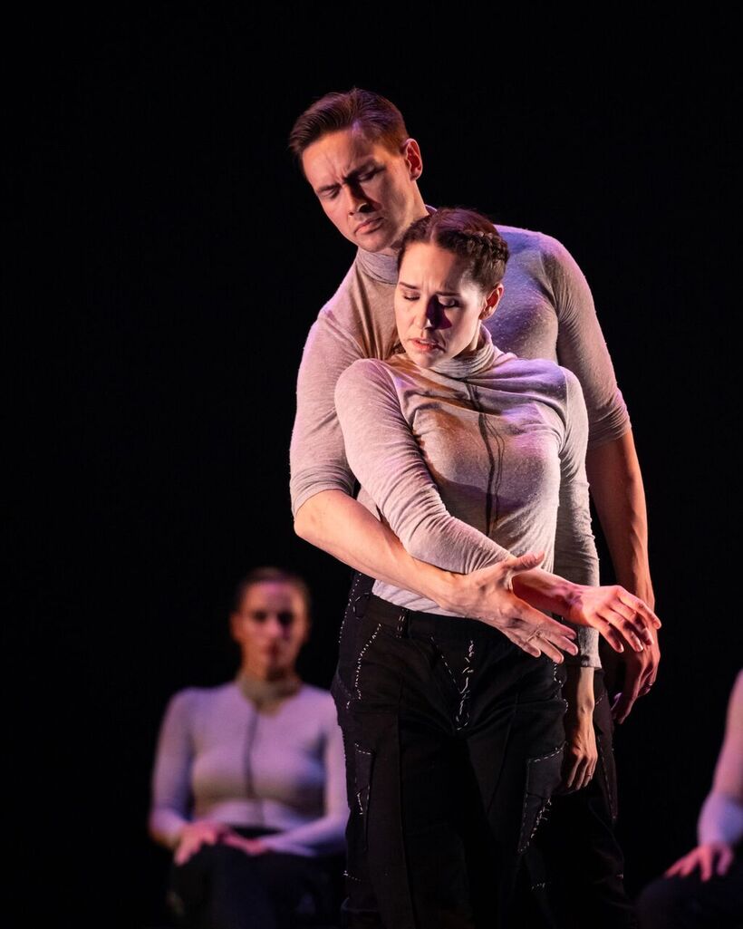 For me, the third part of the work is essentially unclassifiable. A situation arises that is somewhat different from the rest of the ballet. A guest arrives, the woman's lover, or rather a caricature of him. The woman oscillates between the two men or stands against them. Is this a wannabe comic interlude? The first two parts hinted at an interesting path towards the possibility of working with mature dancers in terms of acting and expressive performance. However, I cannot come to terms with the "comic" part. And where will the situation lead? The final duet arrives with a sense of resignation and the woman's unhappiness. However, decorum and social conventions must be maintained. Guests arrive and the audience is faced with an open ending. The words "To be continued" appear on the back horizon.