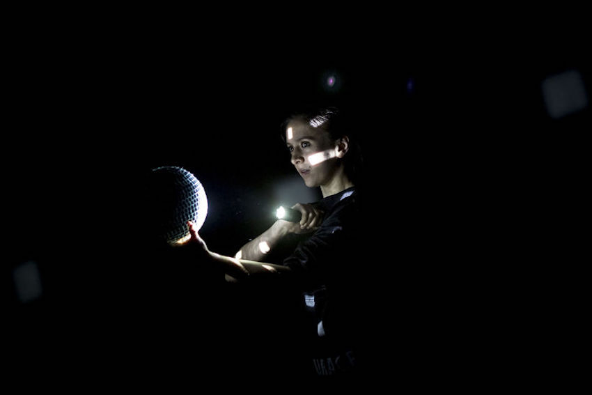 Supernatural powers and the force of the ferocious wind can be experienced in the following sequence A Force Is Coming in which dancers dodge a spinning sphere. Their extreme concentration, power, and trust in their physical skills seem almost hypnotic. A dance with cymbals, resembling the meditative Asian martial arts, reverberates with the power of precision, extreme concentration, and determination of the moment – key qualities of real heroes. Excerpts from video footage of children talking about their heroes show how much we value the physical as well as ethical aspects of our idols. We could be enumerating them forever – and the infinity of the universe is, in a sense, the message the piece wants to convey.